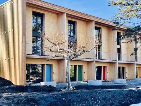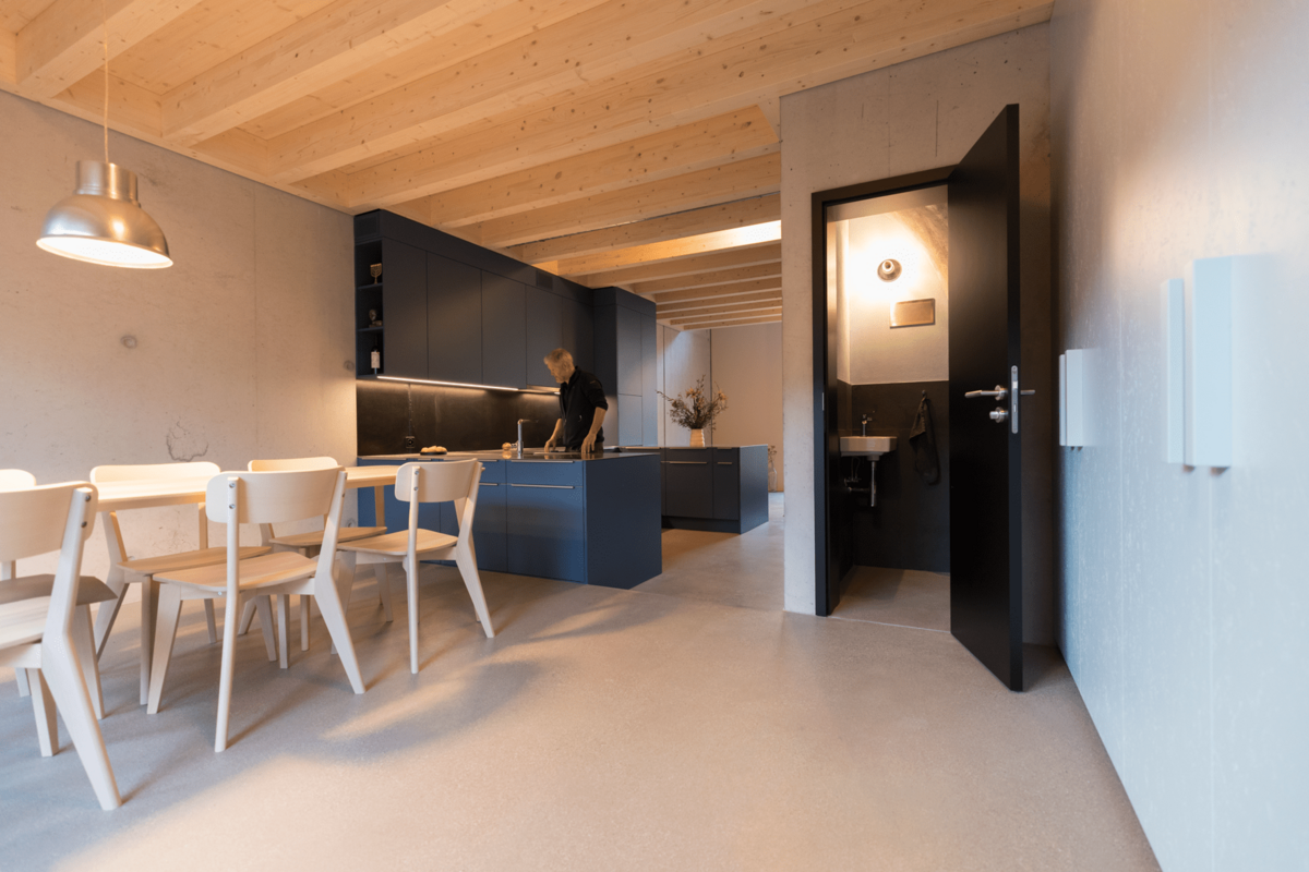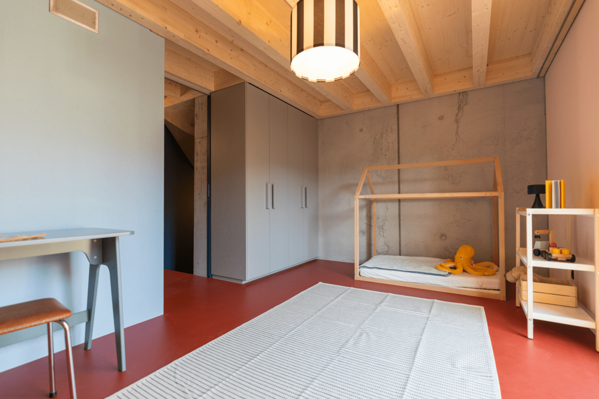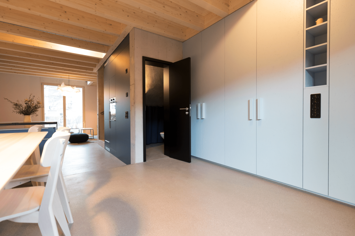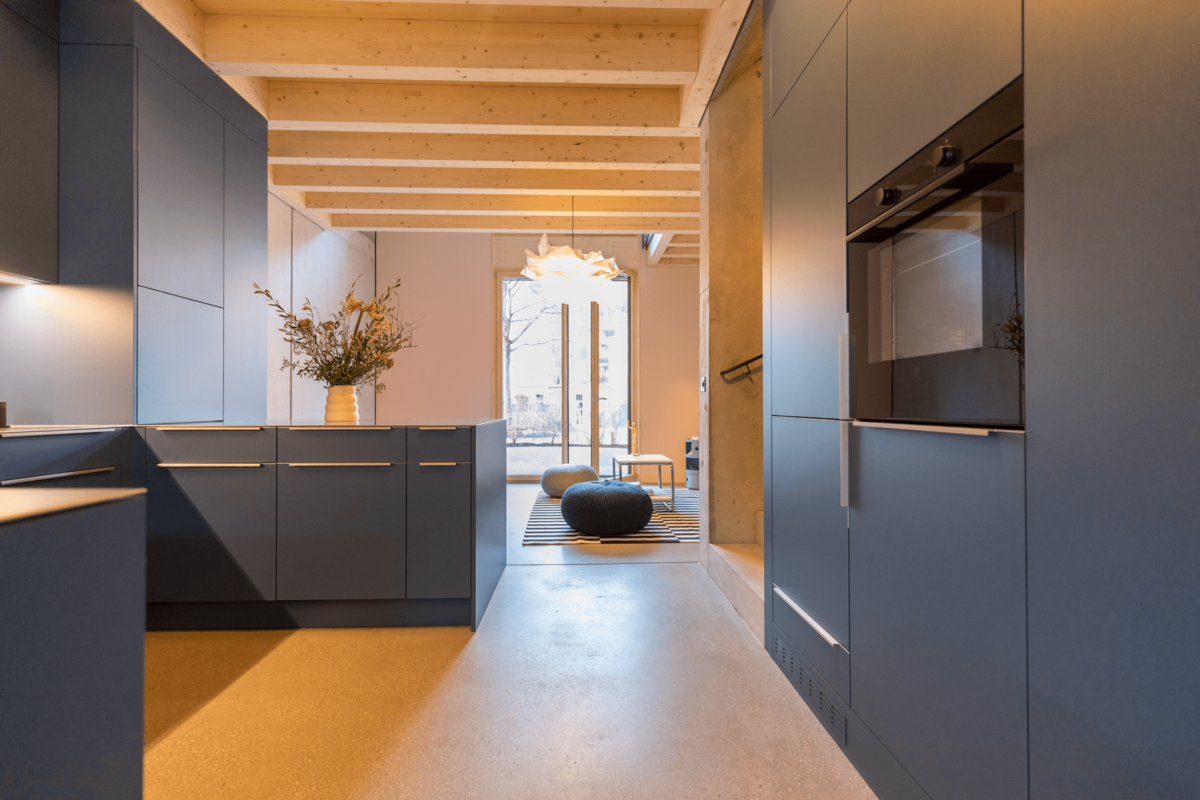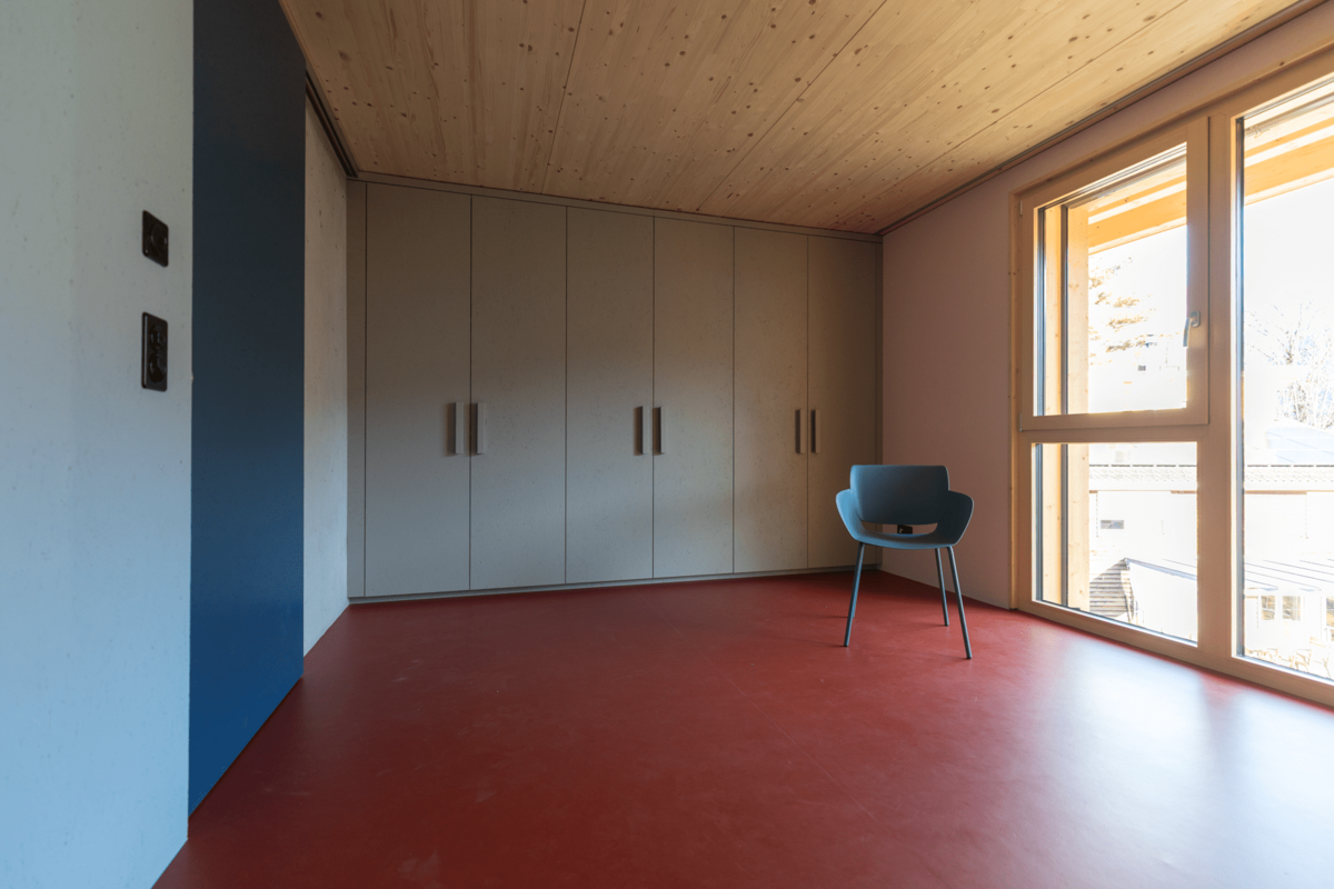 Beim Innenausbau wurde auf ein stimmiges Farbkonzept gesetzt, das an die Epoche von Mid-Century Homes anknüpft, welche für behagliche Wohnambiente stehen. Jedes Reihenhaus verfügt über viel Stauraum, auch können bei Bedarf einzelne Mehrzweckräume dazu gemietet werden. Die zertifizierten Minergie-P-Bauten stehen für Energieeffizienz und Klimaschutz. Eine hochwertige, sehr gut gedämmte Gebäudehülle bietet überdurchschnittlichen Wohnkomfort inklusive kontrolliertem Luftwechsel.