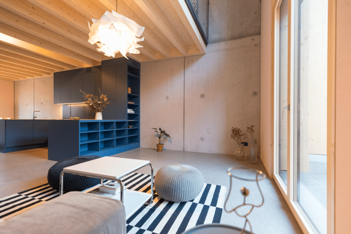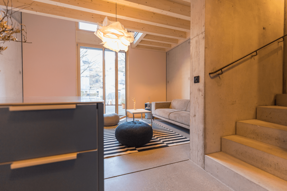 Durch bewusste Investition in Energie-Effizienz wird mehr Energie produziert als verbraucht. Dadurch werden Nebenkosten tief gehalten, zudem eine sommerliche Kühlfunktion ermöglicht. Das Potenzial der gebäudeeigenen Photovoltaik-Anlage wird dadurch bestens genutzt. Die vielfache Verwendung von natürlichen Materialien und Baustoffen, ermöglicht eine entschieden ressourcenschonende Bauweise.